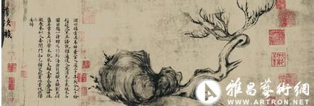 在形形色色文人繪畫行為中,可以看到書法藝術(shù)修養(yǎng)作為大多數(shù)文人畫家審美感受能力的一個重要組成部分,或明或暗地推動著獨立意識日趨彰顯的文人畫對于自身形式法則的探索與建構(gòu)。這種建構(gòu)改變著繪畫的自律活動,使之弱化造型的客觀指向性,而強化線跡鋪排和筆墨構(gòu)成為中心的形式趣味,為文人們的精神演繹提供了充裕的自由空間。當然,這里揭示的書法化形式構(gòu)成,有不少是為了敘述的方便而被“見微知著”地加以強調(diào)的結(jié)果,真正具有明確的主體意識并且在藝術(shù)實踐中取得相應成就的,直到 元代中期之前,實際上主要集中于墨竹、墨梅、枯木竹石這一類傾向文人墨戲的作品,金、元兩代接緒北宋士夫畫的主要媒介,也多為“三友”、“四清”題材而非山水畫題材。等到書法化形式構(gòu)成在山水畫造型意志中取得不可動搖的地位,嚴格地說,已經(jīng)是元代晚期的事了。