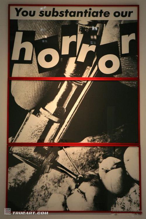 芭芭拉·克魯格 《無(wú)題》中這樣一句話:You substantiate our horror(你證實(shí)我們的恐怖),這幅畫面中的牙鉆,反映了現(xiàn)實(shí)生活給人們?cè)斐傻目植栏小?/span>