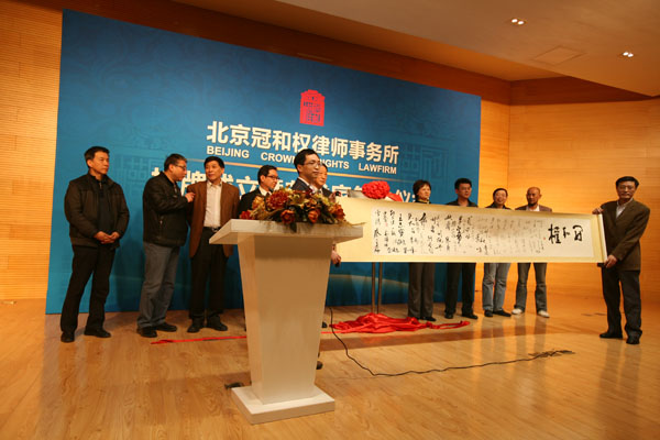 在國家發(fā)布《文化產(chǎn)業(yè)振興規(guī)劃》的政策指引下,宋莊“藝術(shù)原創(chuàng)與展示交易區(qū)”不僅推動(dòng)著文化藝術(shù)自身的發(fā)展,也集合了文化藝術(shù)產(chǎn)業(yè)鏈上的各種資源;此次冠和權(quán)律師事務(wù)所在宋莊亮相,推動(dòng)文化藝術(shù)領(lǐng)域法制化建設(shè)的創(chuàng)新之舉就引起了各方面的高度關(guān)注。宋莊鎮(zhèn)黨委書記李霞,中國對外文化交流協(xié)會(huì)副會(huì)長、北京市參事、原文化部文化產(chǎn)業(yè)司副司長董俊新,全國城市文化產(chǎn)業(yè)聯(lián)盟常務(wù)副會(huì)長李小磊、中國藝術(shù)節(jié)基金會(huì)會(huì)長田建平,中國對外文化集團(tuán)副總經(jīng)理閻東等政府及文化產(chǎn)業(yè)界的領(lǐng)導(dǎo)蒞臨活動(dòng)現(xiàn)場。同時(shí)出席儀式的還有海峽兩岸友好聯(lián)誼會(huì)會(huì)長黃財(cái)旺、秘書長黃淑芬,中國收藏家協(xié)會(huì)副秘書長、陶瓷收藏委員會(huì)主任荊治中,書法教育主編、中國書法家協(xié)會(huì)權(quán)益保障委員會(huì)、教育委員會(huì)委員長章巧珍以及,中國民生銀行北京分行私人銀行部副總裁劉瑾等。