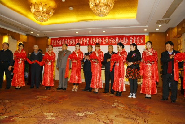 出席儀式的嘉賓有:中國(guó)毛體書(shū)法家協(xié)會(huì)會(huì)長(zhǎng)景學(xué)勤中將、中國(guó)人民解放軍原總后勤部政委周坤仁上將,中國(guó)人民武裝警察部隊(duì)原總司令吳雙戰(zhàn)上將,中國(guó)人民解放軍總參謀部趙秉森政委,總政治部張鵬飛少將,總政治部郝建昌少將,中國(guó)人民解放軍總裝備部王盛濤少將,總裝備部兵種裝備部陳保定少將,中國(guó)人民解放軍測(cè)繪學(xué)院戴學(xué)速政委;中紀(jì)委糾風(fēng)辦主任王嘉巖,中華愛(ài)國(guó)工程聯(lián)合會(huì)主席李和平,中央政法委綜合三室劉方保主任,國(guó)土資源部執(zhí)法監(jiān)察局李建勤局長(zhǎng)中石油唐庭川局長(zhǎng),中國(guó)毛體書(shū)示家協(xié)會(huì)名譽(yù)會(huì)長(zhǎng)、毛澤東侄女毛小青,中毛協(xié)顧問(wèn)、毛澤東主席身邊工作人員周福明,中毛協(xié)顧問(wèn)、中央檔案館毛澤東手書(shū)專(zhuān)家齊得平,中毛協(xié)法律顧問(wèn)侯安春,中毛協(xié)顧問(wèn)副會(huì)長(zhǎng)兼秘書(shū)長(zhǎng)孔維陽(yáng),北京軍區(qū)政治部戰(zhàn)友文工團(tuán)特型演員杜天清,最高人民檢查院李文峰處長(zhǎng),中國(guó)共青團(tuán)中央事業(yè)發(fā)展部主任孫敏,中國(guó)書(shū)法家協(xié)會(huì)辦公室主任李國(guó)明,中國(guó)美院副院長(zhǎng)黃維耿,中國(guó)人民解放軍空軍政治部創(chuàng)作室主任賀國(guó)林,中央國(guó)家機(jī)關(guān)美術(shù)家協(xié)會(huì)主席王闊海,中國(guó)國(guó)際航空總經(jīng)理黃敏,中央電視臺(tái)農(nóng)影中心導(dǎo)演制片人周祚,著名書(shū)畫(huà)策展人李濤,著名青年花鳥(niǎo)畫(huà)家翟俊峰,意門(mén)國(guó)際美術(shù)館館長(zhǎng)黃中、新華社通訊社主管蘇娟,人民網(wǎng)政務(wù)輿情部主任楊華軍,中國(guó)航天書(shū)畫(huà)院院長(zhǎng)趙國(guó)強(qiáng),搜狐網(wǎng)文化頻道高級(jí)編輯高敬等文化藝術(shù)界,商界,媒體界二百多人出席了首發(fā)儀式。