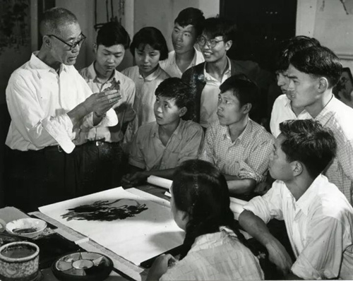 1963年潘天壽給國(guó)畫系花鳥班學(xué)生上課
