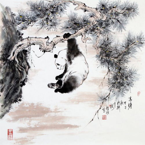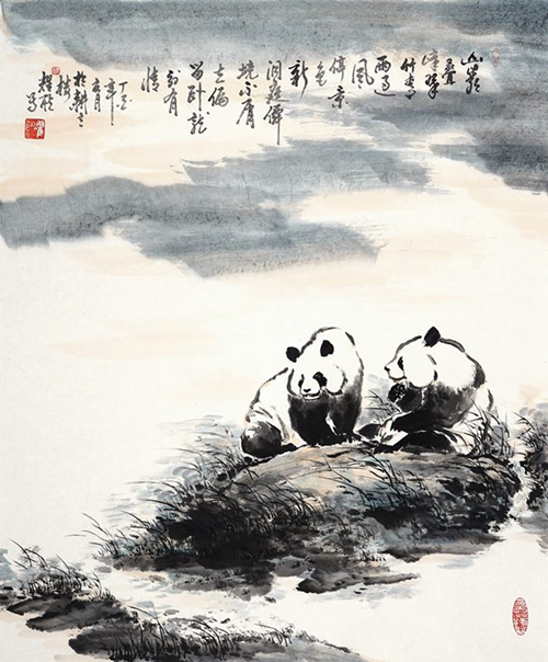 人有癖好,藝有所擅。如善孖虎、阿壽鷲、白石蝦、可染牛、悲鴻馬,皆膾炙人口也!當(dāng)代擅畫熊貓,吳作人與洪世清為畫壇雙雄。金先生師從洪世清教授,不僅深得真諦,且發(fā)揚(yáng)光大!他說:立雪“洪”門,愛熊貓,畫熊貓,性情使然,天賜良機(jī)!一是刑偵工作黑白分明的習(xí)性使他對(duì)熊貓情有獨(dú)鐘。黑白分明,既是警界之道,也是為人之本,契合筆墨情趣意境的發(fā)揮。二是國(guó)寶熊貓?jiān)⒁庀楹秃┖瘢饷骼诼?,且古往今?lái),畫熊貓并有建樹的名家鳳毛麟角。三是良師難遇,又學(xué)師之所擅。世清教授師承齊白石、黃賓虹、潘天壽和劉海粟,是他們的入室弟子,乃藝術(shù)“奇才”、“通才”也。洪教授一生世清,獻(xiàn)身藝術(shù),可敬可佩!