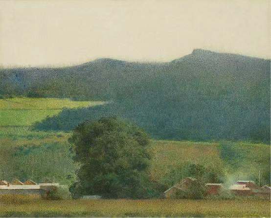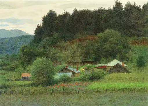 楊飛云說:王建彬是一位水彩畫家,他參加了塞罕壩的寫生活動,那時我看到了他的水彩寫生;最近,又看了他的一些作品,覺得他的心態(tài)很沉,畫得很認(rèn)真,很實。有點兒中國畫董源的感覺,像織布一樣,把自己的心意,情感一筆一筆地織進去,感覺能很穩(wěn)地進入,而且能控制住畫面整體的意境。作品畫幅不大,但景很大,有穿透力,有感染力,看著很親切。