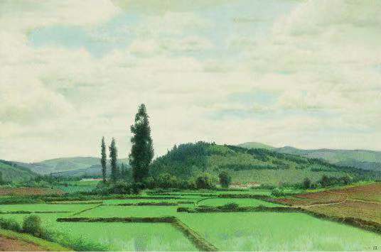 他在創(chuàng)作時有自己的意圖,色彩有力度,鮮活,很好看。對風(fēng)景的時間有感覺,如雪景、春天、秋天,對于綠顏色,這種滿載生命的顏色,表現(xiàn)得很有品味,幾幅大的作品也很精彩。