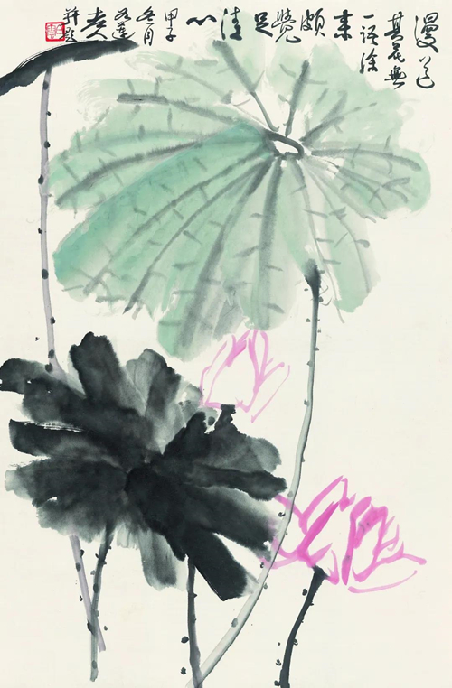 “養(yǎng)草木心”是指從大自然中孕育自身靈性,而“食金石力”不妨看作是大師追求古趣,從書法、金石篆刻、古拓中汲取精神意蘊(yùn)。這一“食”一“養(yǎng)”實(shí)為化合滋養(yǎng)的過程,天機(jī)神化,無不在乎其中。