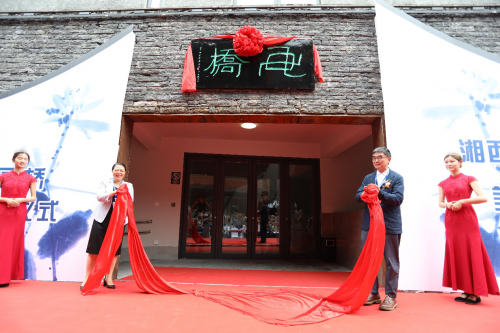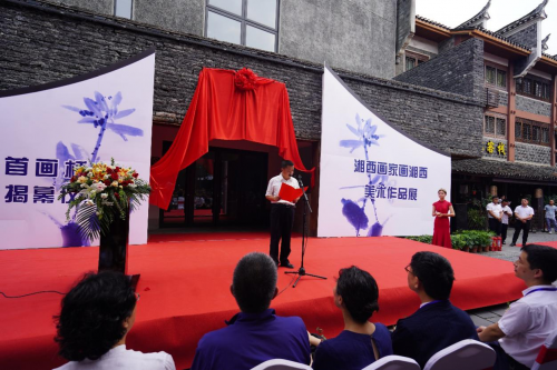 湘西州委常委、州委政法委書記袁新天宣布吉首畫橋啟用及“湘西畫家畫湘西”美術作品展開幕,著名建筑藝術大師張永和與湘西州副州長吳凌頻共同為畫橋揭牌。