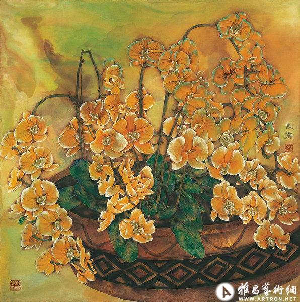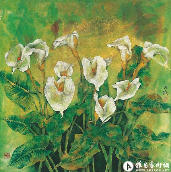 蔣美艷雖然年過五十,但她的閱歷卻遠(yuǎn)遠(yuǎn)超過了這一年齡段中的許多畫家。九十年代初開始小有名氣。近年來,蔣美艷繪畫創(chuàng)作的題材更加廣泛,尤其大花卉工寫結(jié)合,人物畫獨(dú)具創(chuàng)新;主題鮮明,給我留下很深的印象。她十分注重傳統(tǒng)與現(xiàn)代相結(jié)合的筆情意趣,強(qiáng)調(diào)中國畫的意境。她的彩墨荷花、向日葵、山楂樹等,有潘天壽,石濤等大師的精神,但風(fēng)格上完全有她自己的面貌,她的彩墨花卉同樣借鑒了古往今來大家的東西,走出了自己的一片天地,新穎而不失法度。近年來又走遍世界各地,潛心寫生創(chuàng)作了許多畫家未有畫過的植物,菩提樹、山楂樹、各國本土花花草草都在她的畫筆下彰顯美艷絕倫。