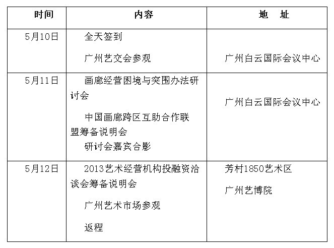 l 參觀廣州藝術(shù)場館和品牌畫廊(廣州藝博苑、芳村1850、文理一堂、三彩畫廊等文化場館);