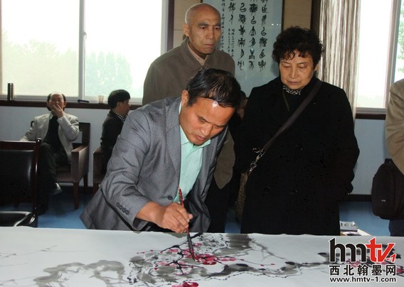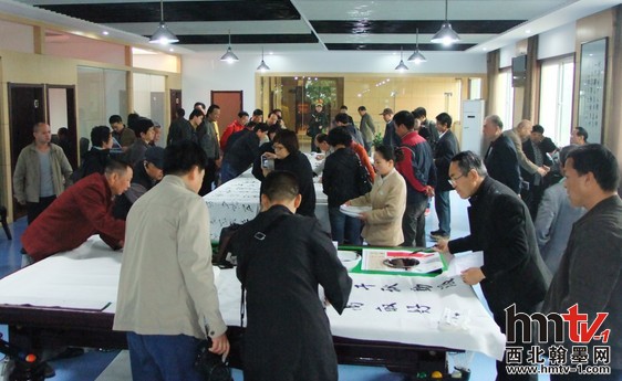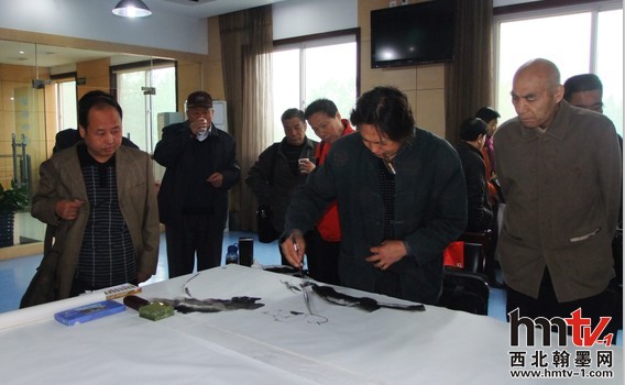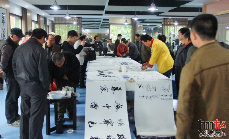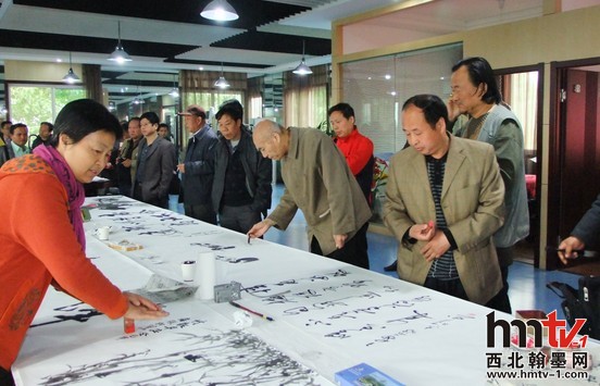此次活動(dòng)先安排的是書(shū)畫筆會(huì),現(xiàn)場(chǎng)由雁塔區(qū)書(shū)法家協(xié)會(huì)主席柏小民、副主席閆忠安組織,到場(chǎng)的書(shū)畫家們熱情高漲、揮毫潑墨,你墨我彩,即刻功夫書(shū)法、山水、花鳥(niǎo)躍然紙上,幾十米的書(shū)畫長(zhǎng)卷就創(chuàng)作完成。