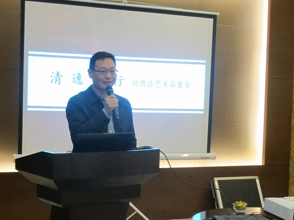 該品鑒會由劉西潔作品展,劉西潔講藝術(shù),藝術(shù)理財沙龍三部分組成。劉西潔系西安美院國畫系副主任、碩士研究生導(dǎo)師,是著名的人物畫家,在傳統(tǒng)人物畫及當(dāng)代水墨人物的創(chuàng)作中獨(dú)樹一幟。其筆下的王羲之、張僧繇、陶淵明、蘇東坡等魏晉群賢、唐宋名士形象生動,以形寫神、逸筆草草、吳帶當(dāng)風(fēng),頗為灑脫飄逸。他的當(dāng)代水墨人物不僅刻畫了生旦凈丑,而且描繪了當(dāng)代人的生活,高跟鞋女郎、倒立的男孩、時尚的先生,一一入畫。簡言之,劉西潔的藝術(shù)穿梭于古今之間,游刃中西。