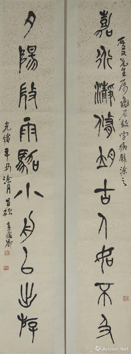 吳昌碩 “嘉行、夕陽(yáng)”十言聯(lián) 紙本 篆書(shū) 縱159.9cm 橫24cm