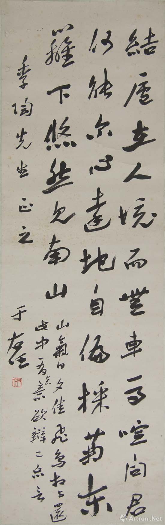 于右任 陶淵明《飲酒·其五》軸 紙本 草書(shū) 縱121cm 橫38cm