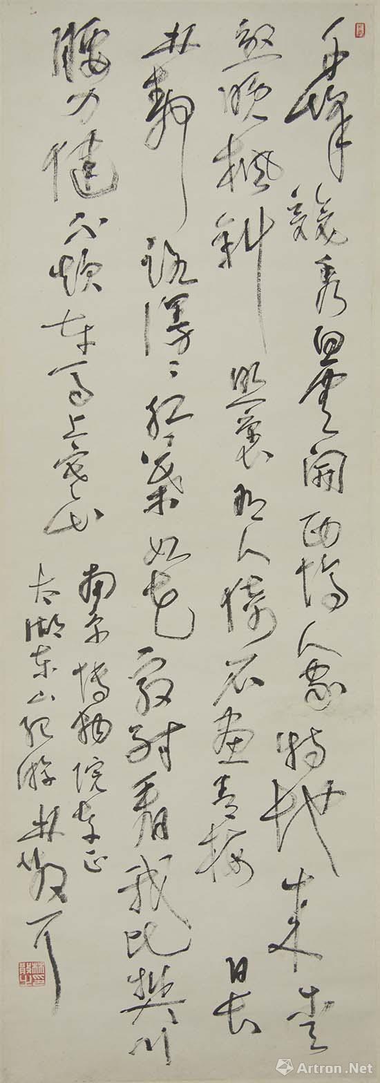 林散之 自作《太湖東山紀(jì)游》詩(shī)軸 紙本 草書(shū) 縱113cm 橫34.2cm 1977年