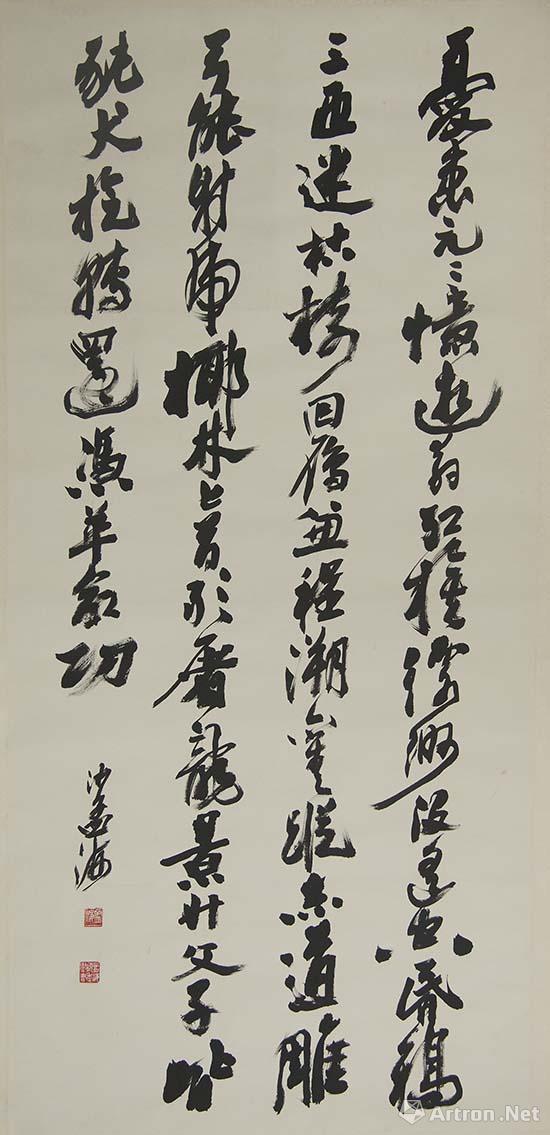 說(shuō)明:沙孟海(1900-1992),浙江鄞縣(今寧波市鄞州區(qū))人。原名文瀚,后改文若,字孟海,號(hào)石荒、沙村。書(shū)由《圣教序》入,自習(xí)《嶧山碑》。青年時(shí)醉心北碑,繼而悉心臨摹歷代碑帖,諸體兼擅。尤擅行草,善用北碑方筆,以側(cè)鋒取勢(shì),形成雄渾恣肆的書(shū)風(fēng)。