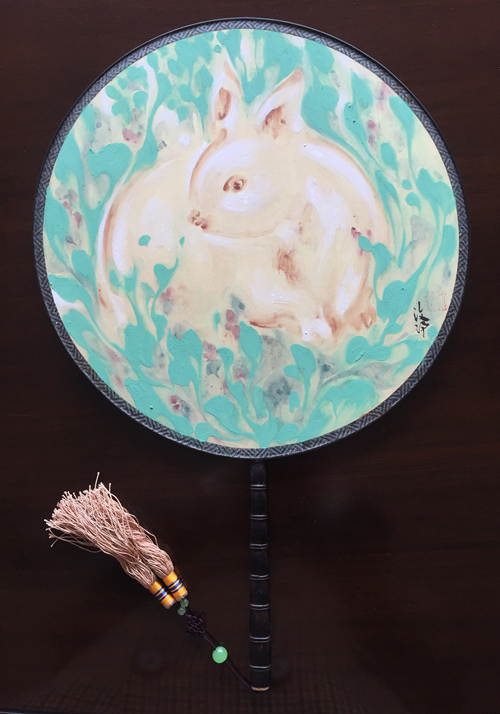 潘汶汛 藍(lán)兔 φ32cm 宮扇 估價(jià):26000元