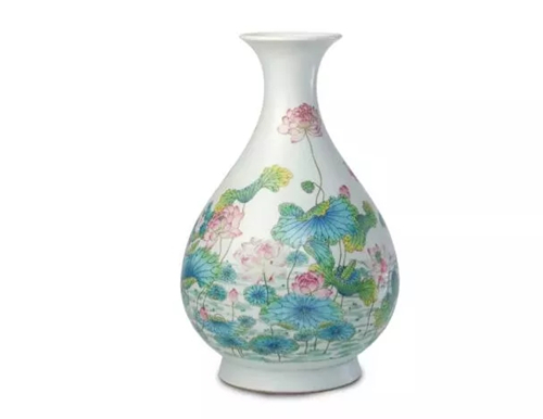 《粉彩荷塘圖玉壺春瓶》 清雍正