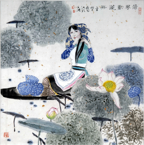 李子侯 荷風(fēng)動蓮舟 66×65cm