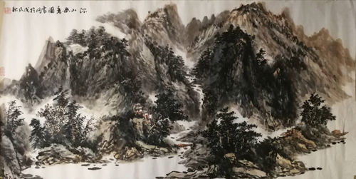 ▌褚震岡《深山幽意圖》68 × 136 cm