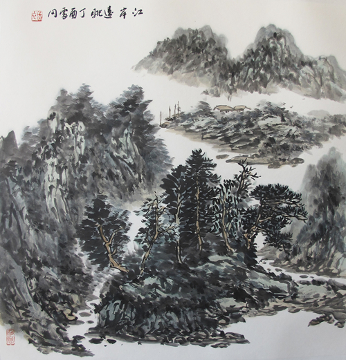 ▌褚震岡《江岸遠眺》69 × 69 cm