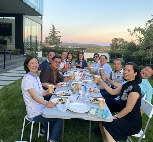 九月七日下午和晚上溫哥華惠風(fēng)畫(huà)廊承辦了別具一格的凈土清流品鑒會(huì)和藝術(shù)沙龍活動(dòng),陳榮華、周岳平、范偉銘、韓長(zhǎng)福、張光輝夫婦、李朝暉、王啟波、臧曉堅(jiān)夫婦、洛辰、顧珍珠和徐柳瑩等論藝術(shù)、談美學(xué)、品名畫(huà),韓長(zhǎng)福先生吟誦蘇東坡之詩(shī),更顯詩(shī)境流動(dòng),晚霞和異域高山相輝映,清風(fēng)和月色下相坐對(duì)酒品茗,仿佛穿越時(shí)空與古人對(duì)話,足顯凈土清流之情境。