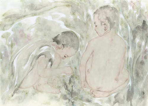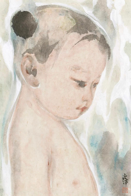 在同場(chǎng)研討會(huì)上,中國藝術(shù)研究院教授杭春曉教授評(píng)論道:汶汛的畫在杭州算一個(gè)意外。雖然,她也鐘情傳統(tǒng),卻沒有沉浸在陸儼少規(guī)訓(xùn)過的筆墨技巧中。仿佛杭州系統(tǒng)的異見者,汶汛踏出一條屬于自己的通往傳統(tǒng)的林間小道。她的畫沒有刻意炫技,在充滿克制的透明性中踐行了水墨語言的精道。若古器新用,一縷沉香繚繞著明前的茶尖,嫩綠中浮動(dòng)幾絲陳年暗香?;蛟S,老舊并非傳統(tǒng)的天然屬性。關(guān)鍵還在使用者是否消化了那層凝重的包漿。汶汛正如此:傳統(tǒng)沒有成為她憑吊歷史的道場(chǎng),而是某種力圖轉(zhuǎn)換的生活景觀。所以,無論從壁畫走來的佛像抑或現(xiàn)實(shí)的孩童,在她筆下都籠罩了一層雅致的時(shí)尚——沒有刻意擁抱當(dāng)代,卻在語言體驗(yàn)中滲透了現(xiàn)代質(zhì)感。其實(shí),古人對(duì)筆墨的強(qiáng)調(diào)從來不是技術(shù)控的偏執(zhí),而是一種訴諸筆性的氣質(zhì)。汶汛機(jī)敏地識(shí)破此中機(jī)巧,放下了杭州的沉重,輕盈轉(zhuǎn)身并為我們帶來別有滋味的“傳統(tǒng)”。