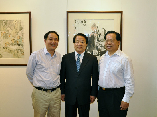 周岳平總經(jīng)理和中國文化部部長蔡武、上海航天書法家協(xié)會(huì)主席楊永法合影