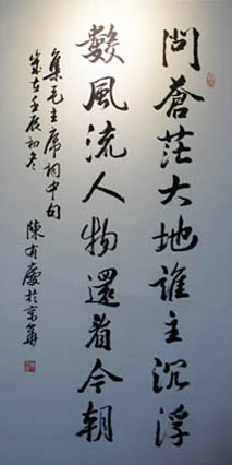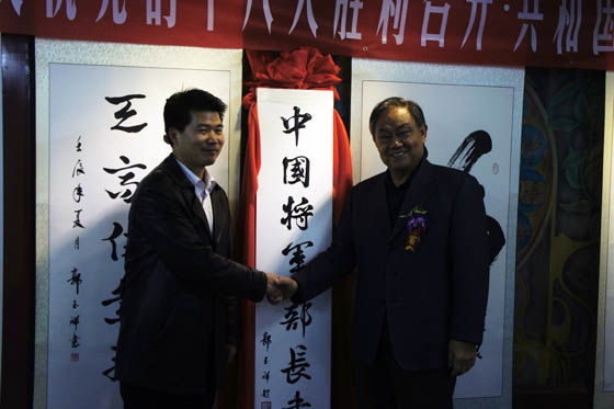 為大力弘揚(yáng)中華傳統(tǒng)文化,增強(qiáng)愛(ài)國(guó)主義精神,慶祝黨的十八大勝利召開(kāi)·共和國(guó)將軍書(shū)畫(huà)展暨中國(guó)將軍部長(zhǎng)書(shū)畫(huà)院琉璃廠展區(qū)在意門(mén)國(guó)際美術(shù)館隆重開(kāi)幕。本次書(shū)畫(huà)展由中國(guó)將軍部長(zhǎng)書(shū)畫(huà)院和意門(mén)國(guó)際美術(shù)館聯(lián)合主辦,炎黃書(shū)畫(huà)家協(xié)會(huì)、中華文博產(chǎn)業(yè)發(fā)展有限公司、新華月報(bào)華、人民藝術(shù)家網(wǎng)、博寶網(wǎng)、中國(guó)藝術(shù)品理財(cái)網(wǎng)協(xié)辦;北京華藝富家文化有限公司承辦,共展出十二位共和國(guó)將軍書(shū)畫(huà)作品60余幅,其中中國(guó)將軍部長(zhǎng)書(shū)畫(huà)院院長(zhǎng)郭玉祥書(shū)畫(huà)作品30多幅。