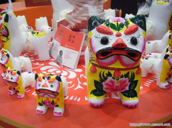 在風(fēng)箏產(chǎn)品博覽會(huì)暨首屆濰坊工藝美術(shù)節(jié)展區(qū),記者看到,前一天還空蕩蕩的展臺(tái)上、展位中,已經(jīng)擺滿了各式富有濰坊特色的工藝美術(shù)產(chǎn)品,有風(fēng)箏、年畫、布玩具等,整個(gè)展區(qū)民俗氣息濃郁。天成飛鳶風(fēng)箏制造有限公司的兩只獅子滾繡球造型的大型布玩具,一米多高,一紅一綠,眼睛炯炯有神,看起來(lái)憨態(tài)可掬,它們的制作者是濰坊市工藝美術(shù)大師張寧。這種傳統(tǒng)的手工布玩具現(xiàn)在是越來(lái)越受歡迎了。