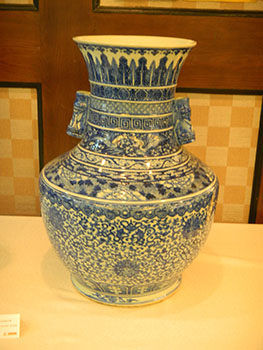 清光緒 青花八寶紋竹節(jié)貫耳尊