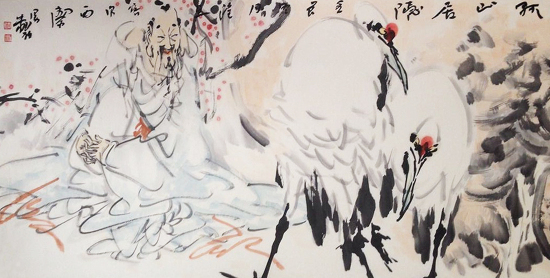 他以創(chuàng)造性的筆墨,勾勒出藍(lán)天下,白云深處一幅幅世外桃源的景象,意寫著當(dāng)代思辨精神,或諷辣、或隱喻、或空靈飄逸、或悲懷傷痛、或暢朗大氣的人物一個個向我們走來,似乎有師承的王子武、吳山明的書卷文人之氣,但更多是他作品深深的憂患意識,對中國當(dāng)代水墨創(chuàng)造性的技法運用和人文表達(dá)情境的拓展。