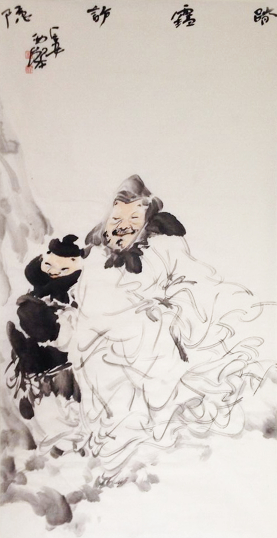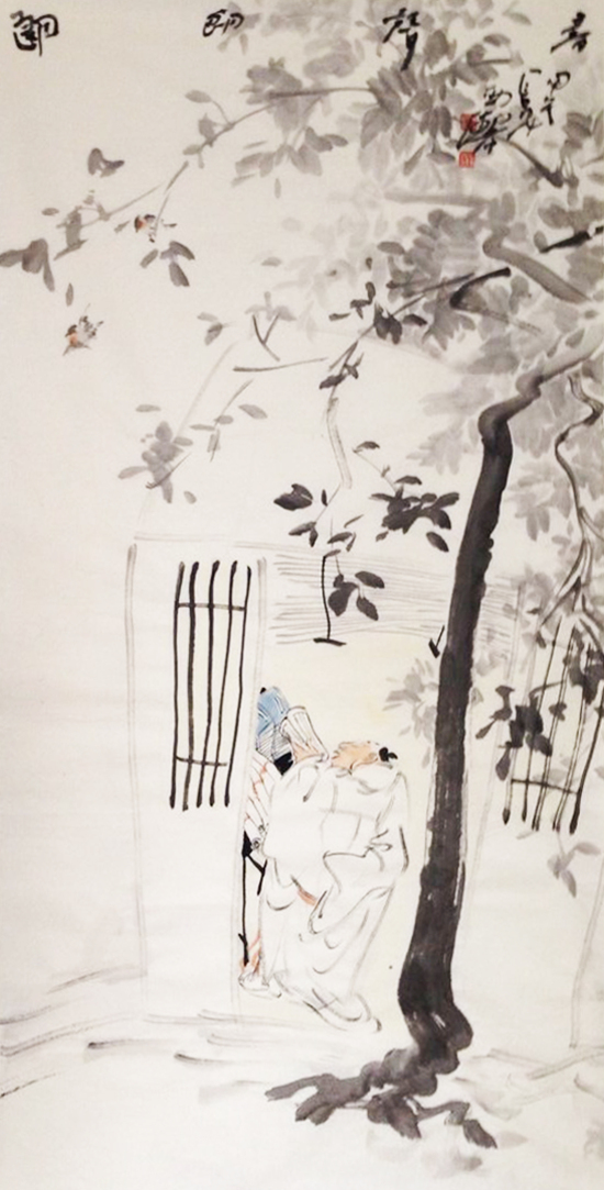 魏晉名士的風(fēng)清骨峻在他的筆下栩栩如生,當(dāng)今滾滾紅塵的世界百態(tài)在他筆走墨舞中緩緩展開:《惠風(fēng)和暢》、《春動林梢》、《江山入畫圖》、《天朗氣清》等一批精品力作,線條流暢,用筆落落大方,衣帶飄逸、深情飽滿、蘊意高古。品讀劉西潔的作品,千年終南山的余韻和當(dāng)今都市的精神均躍然紙上,讓人靜靜回味,悠然綿長。