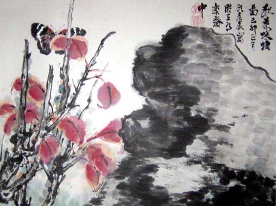 作品名: 秋葉蝴蝶圖