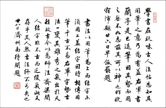 我們?cè)賮砜纯辞疤熘炖蠋煹牟┪模@樣寫到:“書法作為藝術(shù)作品,自有其藝術(shù)形象。正如舞臺(tái)上的演員,扮演著不同的角色。有的作品象正人君子,峨冠博帶,終具端正儒雅之風(fēng),有的作品如不規(guī)之徒,舉手投足,難免偷雞摸狗之態(tài)。宋高宗《翰墨志》說‘正則端雅莊重結(jié)密得體,若大臣冠劍儼立廊廟’,說的也是書法的正大氣象。如果委瑣、扭曲、寒磣、變態(tài)、扭泥作態(tài)的書法充塞書壇,不見得是個(gè)好現(xiàn)象。陳傳席說,“我相信我們的后來人會(huì)鄙薄我們,大部分人會(huì)看不起我們這一代,可也正是我們的積淀奠定了基礎(chǔ),留下了書法延續(xù)的種子”。