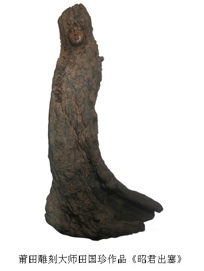 在“雄鷹”的旁邊,還立著一尊看上去頗為滄桑的雕像,簡潔的刀法在樹干上勾勒出一位年輕女子的面龐。孫吉志告訴記者,這是他最喜愛的龍眼木雕《昭君出塞》,曾在“首屆閩臺(集美)收藏文化藝術(shù)節(jié)”中特別展出。而這尊木雕的故事則更有些機緣巧合。2008年,孫吉志在集美偶然遇到了莆田雕刻大師田國珍。當(dāng)時他因長期從事玉石雕刻引發(fā)身體不適,轉(zhuǎn)行做起了木雕。求賢若渴的孫吉志力邀田國珍來到自己麾下,任命他為古船木加工廠廠長,并盡可能給他充分的創(chuàng)作空間。這件《昭君出塞》便是他為孫吉志創(chuàng)作的第一件作品。