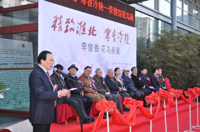 開幕式由中國琉璃廠畫院秘書長劉劍穎女士主持。原中國國家畫院副院長、當代著名畫家李寶林先生,著名畫家王成喜先生、中國畫學會秘書長孫克先生,中國琉璃廠畫院院長魯光先生,中國美術院常務副院長浮沉先生、新加坡南洋畫院院長宋明遠先生,中國老年書畫研究會常務副會長唐松麟先生,安徽省美協(xié)副主席楊國新先生、淮北市副市長王莉莉女士,中共淮北市委宣傳部部長顓孫新龍先生等嘉賓出席了李俊香花鳥畫展開幕剪彩儀式及李俊香畫展座談研討會。中國美術家協(xié)會主席劉大為先生為李俊香花鳥畫展開幕發(fā)來了賀電。在京各界人士300余人參加了開幕式,領導嘉賓一致對李俊香花鳥畫創(chuàng)作給予了高度評價。