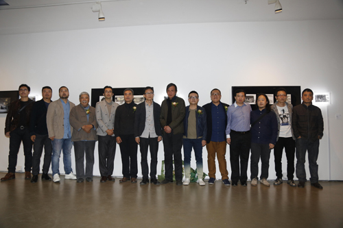 左起:藝術(shù)家孫浩、藝術(shù)家秦修平、藝術(shù)家杜小同、東方藝術(shù)國畫主編楊建國老師、今日美術(shù)館館長高鵬、策展人杭春曉、魯迅美術(shù)學(xué)院中國畫系教授李彥伯、藝術(shù)家王煜、魯迅美術(shù)學(xué)院中國畫系教授陳蘇平、出品人苗壯、玉衡藝術(shù)中心王剛先生、藝術(shù)家劉琦、藝術(shù)家杭春暉、藝術(shù)家徐加存