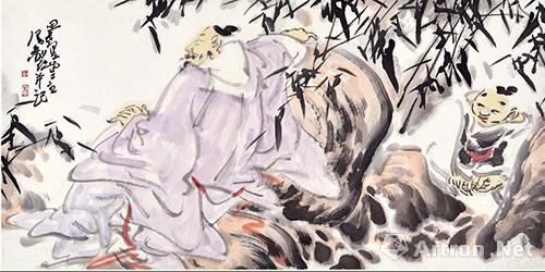 我們可以關(guān)注一下劉西潔的竹林風(fēng)格的一些人物作品,他仿佛是魏晉的風(fēng)度,天朗氣清,物我兩忘,讓我們一下子回到了一千多年前的時代,但是又仿佛是我們當(dāng)下追求的一種心靈的自由或者是心靈釋放的那種氣度,我們時代太缺少這種氣度,所以說劉西潔通過筆墨給我們尋找到了這種魏晉風(fēng)度,一種當(dāng)代的筆墨的表現(xiàn)語言。竹林風(fēng)骨實際上是中華文人的一種文化情懷,最表現(xiàn)的是什么?是心性的自由!而劉西潔在筆墨心性的自由里加上他詩意的表達(dá)和哲理的思考,所以我覺得在劉西潔的畫作讓我們思索的不僅僅是古人的生活狀態(tài),更重要是我們當(dāng)代人的心性的釋放問題,我覺得這是一個永恒的藝術(shù)表達(dá)的時代命題。