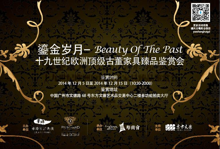 本次《鎏金歲月》十九世紀(jì)歐洲古董家具臻品鑒賞會(huì)是由華埠家具典藏和博禮古董家具藝術(shù)廊、東方文德藝術(shù)品交易中心攜手粵商會(huì)聯(lián)袂策劃,不僅僅是一次簡(jiǎn)單地對(duì)歐洲古董家具的展出與懷舊,更多是欣賞一種文化,是一次中歐文化交流活動(dòng)。吸引了多家文化及企業(yè)機(jī)構(gòu)關(guān)注,除了特邀嘉賓鑒賞會(huì),還面向大眾開放,歡迎收藏家及愛好者前來觀賞,鑒賞時(shí)間為2014年12月5至2014年12月15日(10:30-20:00),地址是中國(guó)廣州市文德路68號(hào)東方文德藝術(shù)品交易中心。
