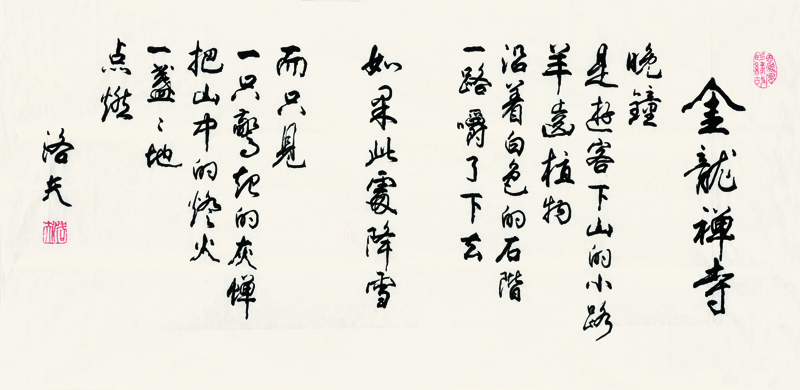 洛夫之書法具有鮮明的文化意識,富含中華文明的學(xué)養(yǎng)。他的書法頗具高雅的氣質(zhì)和風(fēng)度,是這樣一種內(nèi)外一致的氣韻優(yōu)雅、動靜結(jié)合的靈動,這又是與博學(xué)、謙遜、高雅、悲憫情懷等人類美德密不可分,這是洛夫之書法所特有的優(yōu)雅書卷和文人氣息。他的書法字里行間集中體現(xiàn)了中庸、內(nèi)儉、含蓄等中華文化的審美精髓。他遠(yuǎn)離地緣政治,寧靜于禪、道的虛空,清新華澤,純凈質(zhì)樸,一股淡雅之氣與超純自然清新之風(fēng),乃是中國文人知識分子的本真,高風(fēng)清骨,以及對事對物不帶偏見、不帶色彩的清澈認(rèn)知,所煥發(fā)出來的清雅純粹藝術(shù)成就。