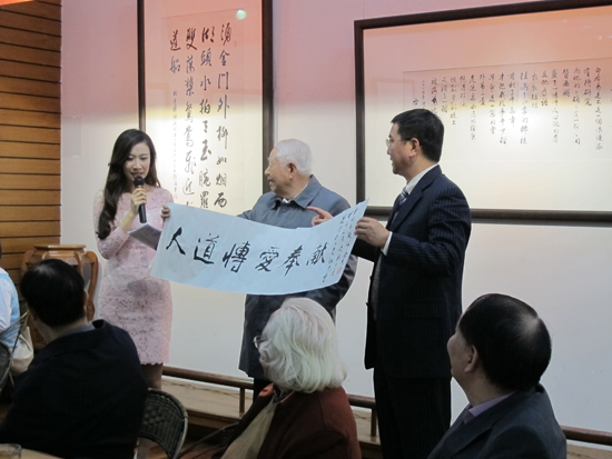 本站訊,2015年11月3日下午,西湖邊的一場高端的文化活動打開了詩意美學(xué)的新空間。嘉賓有諾貝爾文學(xué)獎提名,中華詩壇泰斗、世界文化大使、人文書法大家、溫哥華中華文化藝術(shù)基金會顧問洛夫先生親自參加的“洛夫詩文書法品鑒會”,在杭州唐云藝術(shù)館(杭州市上城區(qū)南山路45號)舉行。洛夫所創(chuàng)造的“天涯美學(xué)”文化體系,完成了一個文化人國際化視野和哲理思考的超越,也是中華文化融入世界的一項(xiàng)重要文明成果。會議就洛夫詩書天涯美學(xué)與西湖文化,打造杭州詩歌之都等課題,展開熱烈研討。