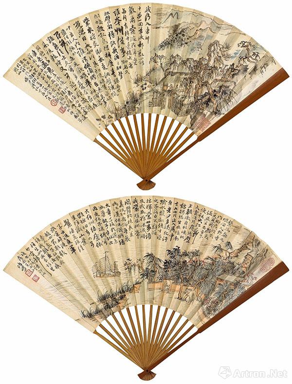 陸儼少 杜陵詩(shī)意圖 成扇 設(shè)色紙本 19×50 cm 成交價(jià):RMB 1,725,000