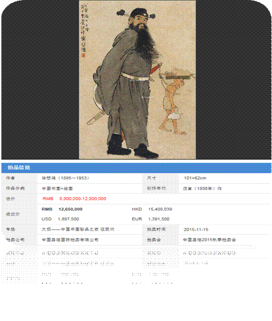 據(jù)廣州榮古齋市場部介紹:此徐悲鴻款天師捉鬼圖實屬難得,保存完好,剛推出市場不久就得到了許多收藏愛好者的贊賞,將會亮相勞倫斯香港秋季拍賣會。