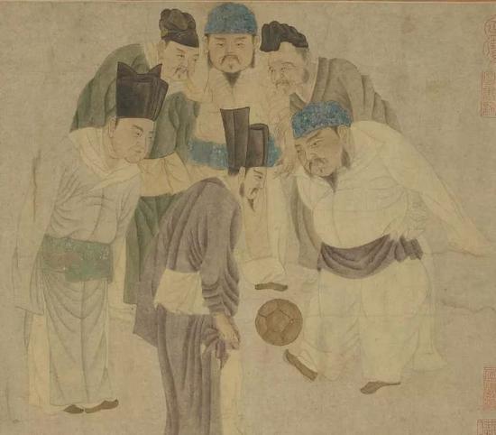 宋史或宋代筆記中多有這方面的記載,宋太宗趙光義尤愛蹴鞠?!端问贰肪硭摹短趥鳌酚涊d:“(太平興國(guó)五年,980年)三月戊子,會(huì)親王、宰相、淮海國(guó)王及從臣蹴鞠大明殿。”卷二百八十《王榮傳》也有記:“張明起賤微中,以蹴鞠事朕,潔己小心,見于輩流。夫刑罰之加,必當(dāng)其罪。”君臣蹴鞠的場(chǎng)景,似乎在當(dāng)時(shí)是比較常見的。