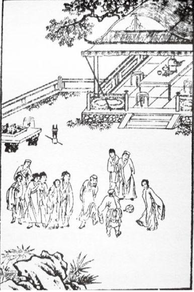 可以看到,當(dāng)時(shí)蹴鞠的活動(dòng)量是很大的。蹴鞠由一種軍事訓(xùn)練發(fā)展而來。漢代宮廷建造了運(yùn)動(dòng)場(chǎng),通常由軍隊(duì)參加比賽。唐代以前,雙方球隊(duì)都需要防守6個(gè)目標(biāo),在唐代,減為每方一個(gè)。至少有一位唐代皇帝曾參與蹴鞠,即唐敬宗李湛。他在一個(gè)狩獵、蹴鞠和宴飲的狂野之夜后,被宮中的高級(jí)宦官謀殺。(〔英〕魏根深《中國(guó)歷史研究手冊(cè)》北京大學(xué)出版社)