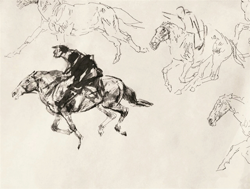 ●1958年,隨學(xué)生入農(nóng)村現(xiàn)場(chǎng)教學(xué),畫(huà)大量速寫(xiě)。開(kāi)始深入研究人體造型結(jié)構(gòu),結(jié)合教學(xué),以線描作素描,試行中國(guó)畫(huà)專業(yè)素描。夏,在浙江海寧海邊農(nóng)村現(xiàn)場(chǎng)教學(xué),畫(huà)海塘工程《馴服大?!?。