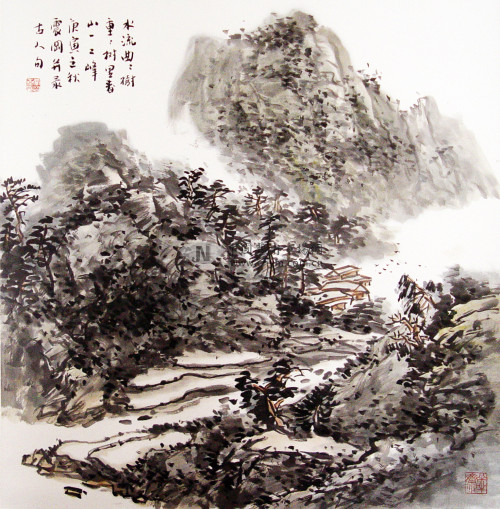 褚震岡 水流曲曲(水墨傳承出版原作)68×68cm