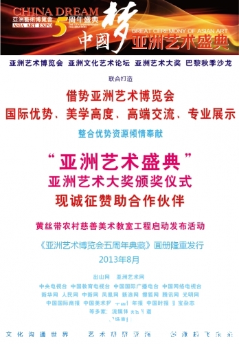 組織優(yōu)勢:組委會即將在后續(xù)系列活動中為您提供包括 “亞洲藝術博覽會五周年盛典”、《亞洲藝術博覽會五周年典藏》畫冊、 “亞洲藝術博覽會尋訪歐洲藝術之源”文化交流考察活動、“巴黎秋季藝術沙龍”及系列海內外推廣活動的多元化服務和市場機會,現在誠意邀請您的參與和支持,共同打造“東方文藝復興,建立亞洲獨立自主審美體系”。
