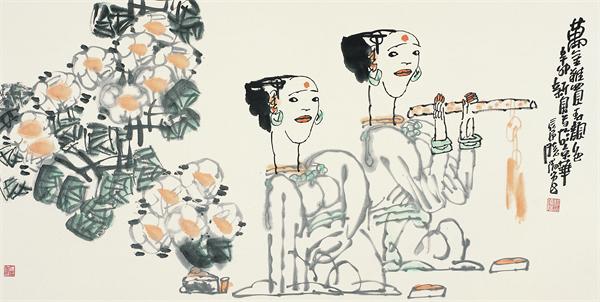 劉西潔,西安美術(shù)學(xué)院國畫系副主任。說到劉老師,不得不提他的經(jīng)歷,劉老師曾于中國美術(shù)學(xué)院求學(xué),后到西安美術(shù)學(xué)院工作,這段從江南到西北的特殊經(jīng)歷,造就了劉老師作品剛?cè)岵?jì)的特點(diǎn)。隔離不了的江南生活,讓劉老師的作品骨子里透著濕潤的嬌柔,不管是傳統(tǒng)題材還是當(dāng)代題材,尖銳的同時(shí)帶著些許委婉,由此可見,劉老師也是重情之人,批判但接納、包容。劉老師筆意輕松,沒有負(fù)擔(dān)的精神世界,鮮見活潑,天真的性格讓作品畫面輕松、愉悅,像是讀小人書一般的快樂?;顫娍蓯鄣谋砬?、水靈靈的眼睛、調(diào)皮的笑容……一切都顯得很自然、很順暢,或許正是因?yàn)檫^于復(fù)雜的成人精神,遇見如此的簡單,才讓劉老師的作品那么的受人喜、受人贊美。這份情緣,是一種天賦。